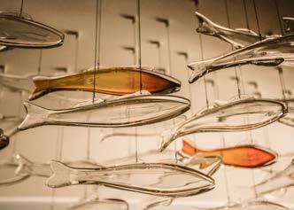 Llewelyn created the shoal of glass Southern Ocean whiting which guests will meet in the walkin wine cellar and on the walls of the Baillie Pavilion sitting rooms.