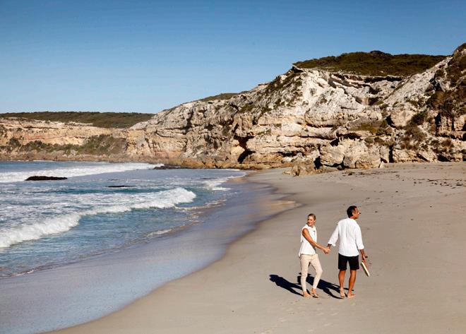 Wander along the lodge’s raised boardwalk and onto the windswept shore of Hanson Bay. Spot sea birds scuttling along the sand, pass sea caves sprouting fossilised tree trunks and discover the pristine cove of Hanson Bay Beach where a cool dip is optional.