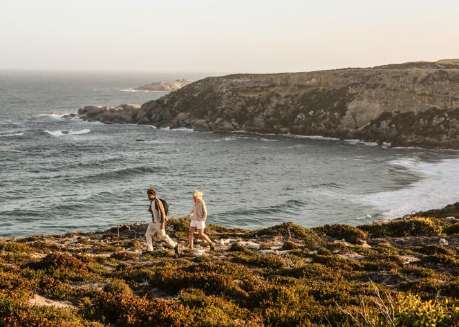 Step out from the lodge doorstep for a guided walk traversing the limestone cliffs of Hanson Bay. Enjoy a bird’s eye view of the Southern Ocean swell while learning about the diverse and resilient coastal ecology. Keep an eye out for an osprey soaring overhead or dolphins frolicking below.
