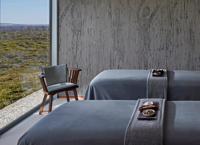 Stepping into the wilderness via a glass-walled aerobridge from the main lodge, guests reach the Southern Spa, a private sanctuary sitting low amongst the coastal heath with views to a panorama of native bushland framed by wide open skies.