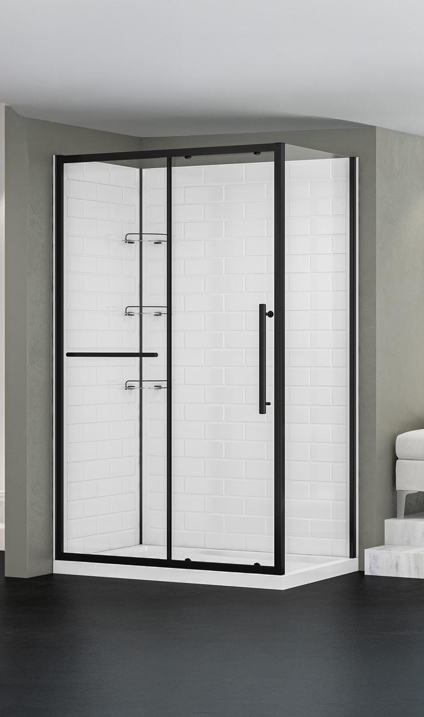 Porte de douche coulissante noire 48 x 36 po avec panneau latéral DS5473648BK