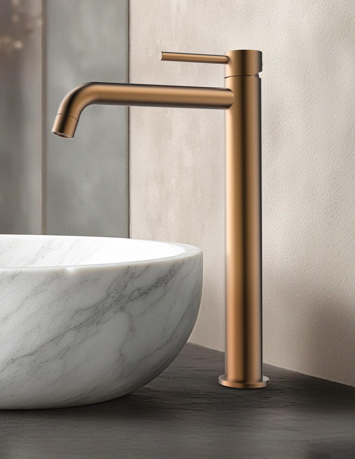 Robinet de lavabo monotrou or satiné avec bondet FL7021-GD