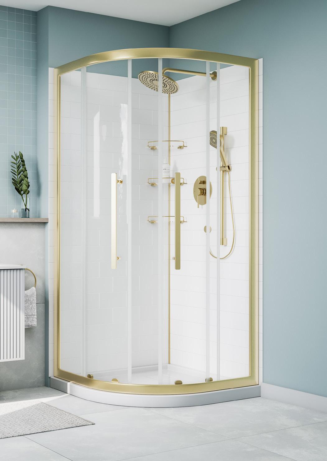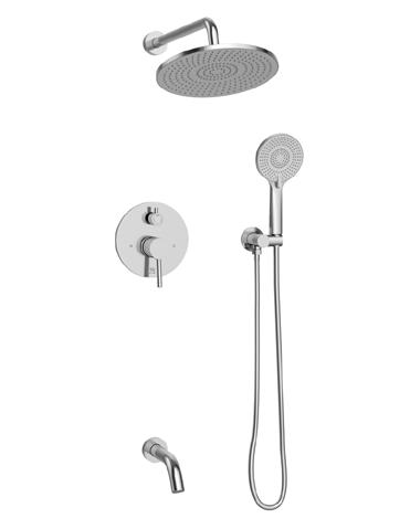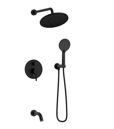 Robinetterie de douche arrondie avec tête de douche pluie, douchette et bec de bain