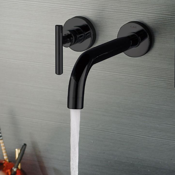 Robinet de lavabo mural noir à une poigné FL1108W-BK