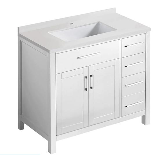 Ensemble meuble-lavabo sur pattes 36 po blanc mat avec dessus en quartz blanc