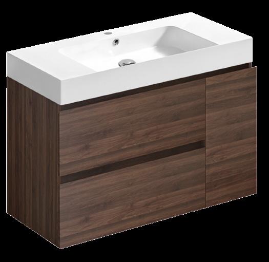Vanité murale 36 po au fini noyer foncé à 1 porte et 2 tiroirs