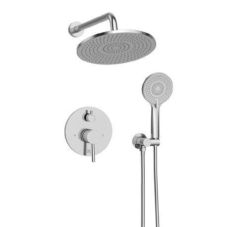 Robinetterie de douche ronde avec tête de douche pluie et douchette