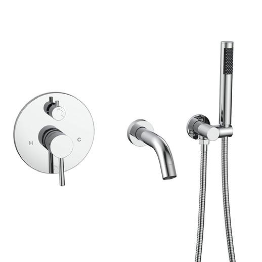 Robinet de bain mural arrondi chrome avec douchette F72-1314CH