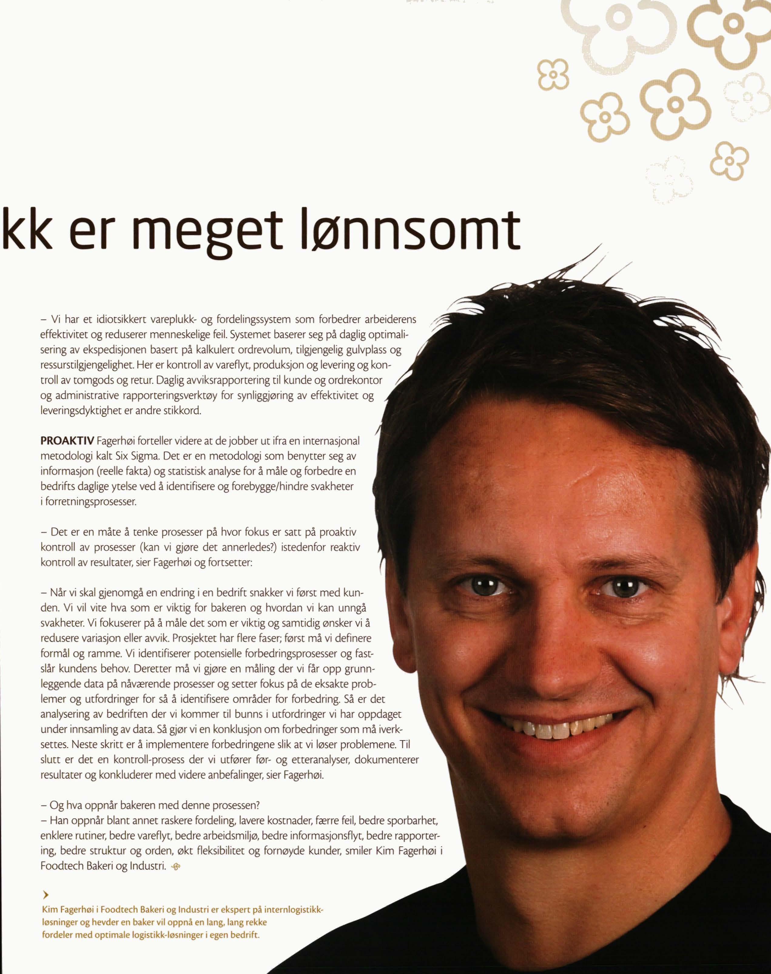 - Den som har den beste internlogistikken sparer masse penger. En omlegging til optimale logistikkløsninger gir en lang rekke andre fordeler, sier Kim Fagerhøi i Foodtech Bakeri og Industri.