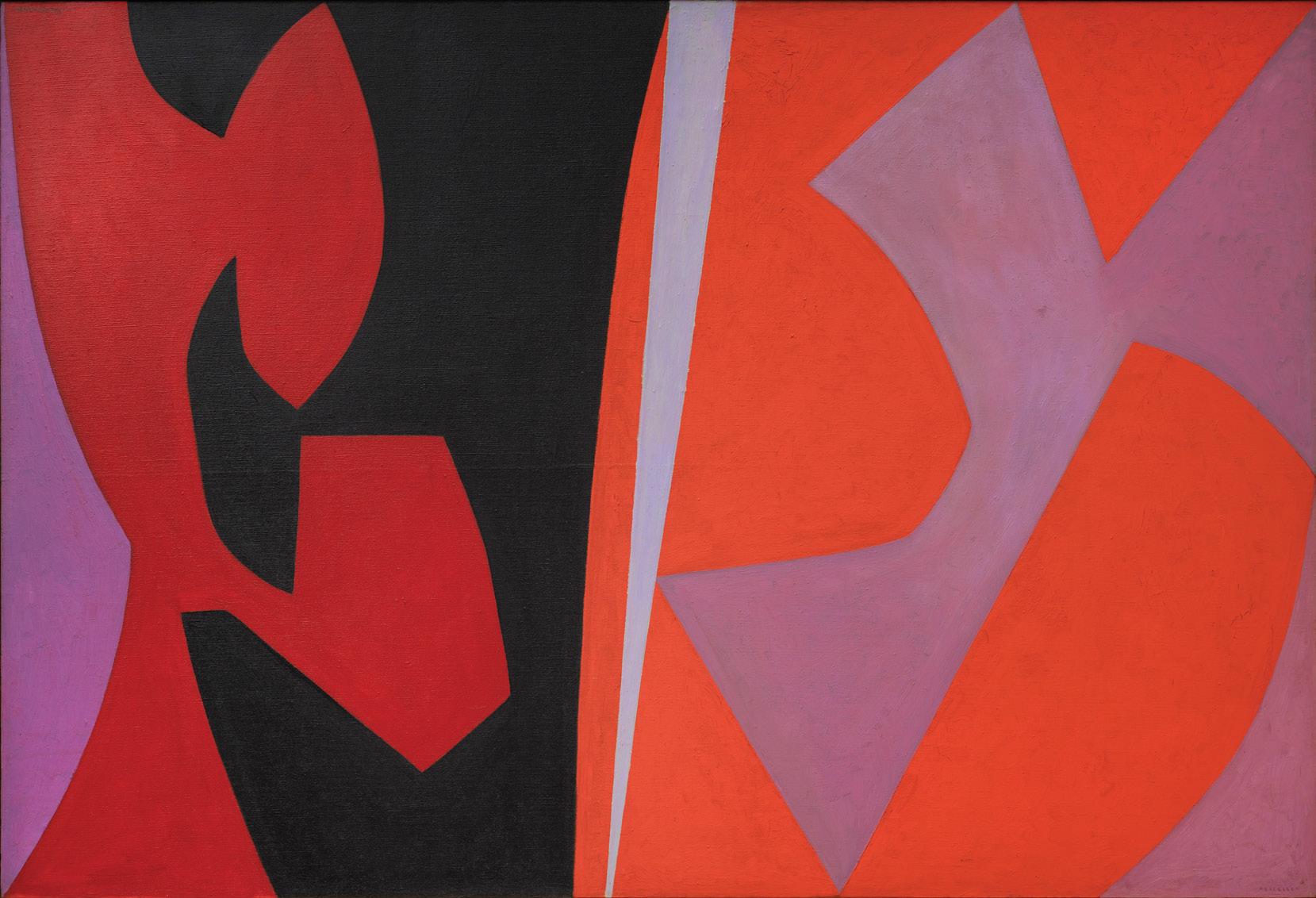 Good Vibrations: Hard Edge Abstraction highlights the work of several of the California Hard Edge Group, including Benjamin, Feitelson, and his wife Helen Lundeberg, whose precise compositions and restricted palettes evoke the landscape and sometimes architectural elements. Additionally, the exhibition features stellar examples from the following artists associated with Hard Edge and Geometric Abstraction, including several from the Washington Color School: