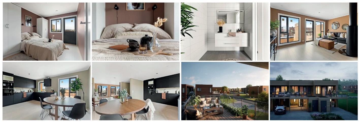 Boligene er energieffektive og har fine planløsninger, nye lekre bad og solrike uteplasser. Bilen plasserer du i egen garasje eller carport. Boligene omkranser trivelige tun med lekeplasser og sosiale møteplasser.