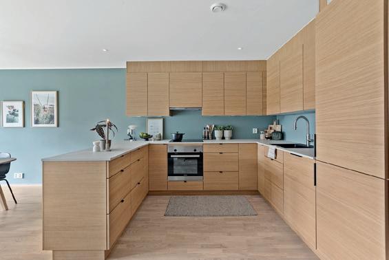 Kjøkken med god benkplass og integrerte hvitevarer. To romslige, flislagte bad. Tre lyse og gode soverom.