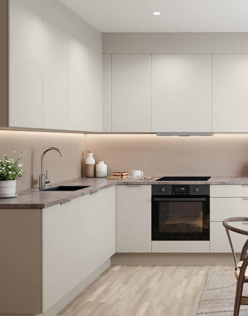Det er god standard, 3-stavs hvitpigmentert parkett på gulvene, flislagt bad med romslig baderominnredning og dusjhjørne. Kjøkken fra anerkjent leverandør som leveres komplett med hvitevarer. Boligene leveres innflytningsklare med plen, asfalt og moderne flater. Her kan du flytte rett inn og begynne å bo fra første dag.