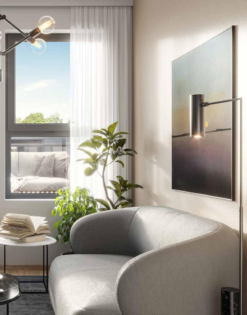 Alle illustrasjoner, skisser, møblerte plantegninger m.m. er kun ment å danne et inntrykk av den ferdige bebyggelsen, og kan således ikke anses som endelig leveranse. Inntegnet utstyr/inventar medfølger ikke, så som f.eks. hvitevarer og møbler utover det som er beskrevet i leveransebeskrivelsen, og det vil derfor fremkomme elementer i presentasjonsmaterialet som ikke inngår i leveransen.