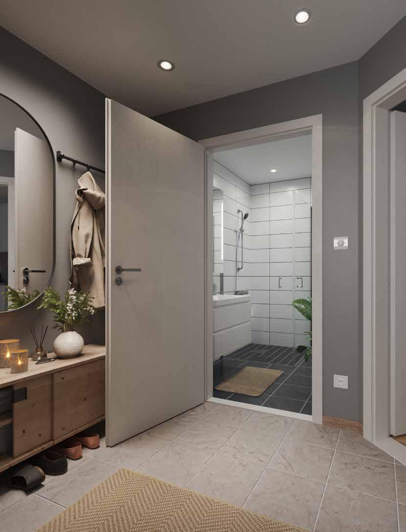 Alle presentasjoner, planer, skisser og bilder i salgsmaterialet er av illustrativ og generell karakter og kan derfor vise bygningsvolumer og inneholde innredning og detaljer m.v som ikke inngår i leveransen eller passer for alle boliger.