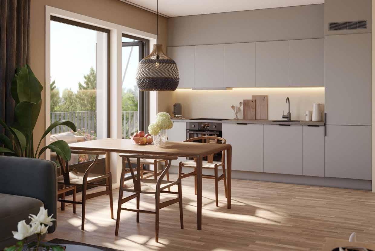 Leilighetene reflekterer de samme verdiene – lyse, luftige rom som skaper ulike soner og fleksibiliteten du trenger for ulike situasjoner.