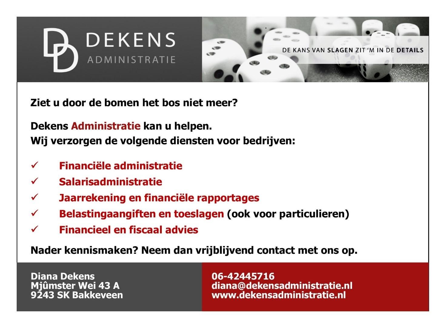 Inleverdatum: uiterlijk op de laatste dag van de voorgaande maand (soms wat eerder, zie agenda op www.bakkeveen.nl). Kopij is doorgaans gratis, ook voor ondernemers, voorzover in dit blad geadverteerd wordt. Handgeschreven kopij mag ingeleverd worden in de rode brievenbus op Tsjerkewâl 6 in Bakkeveen.