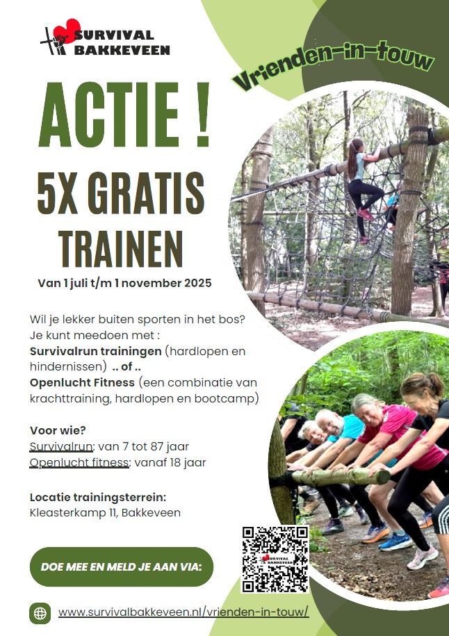 Elke vrijdag Fitness in en rond survivalterrein. 9-10 uur. St. Survival Bakkeveen 17