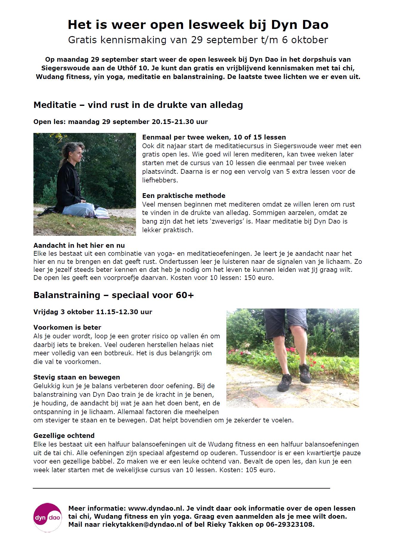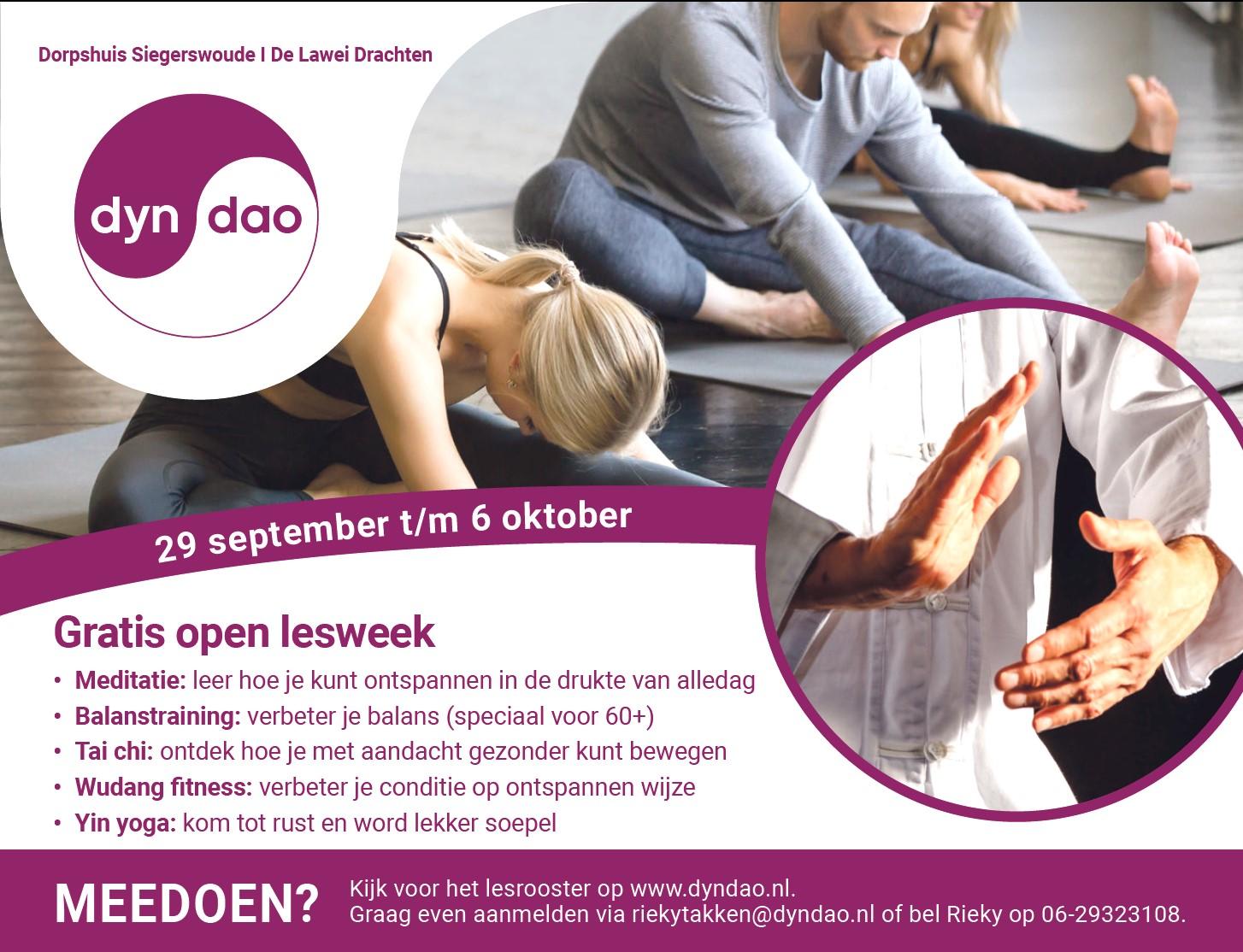 Ma 6 okt Gratis open les: tai chi 20.15u, dorpshuis Siegerswoude 25