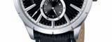 Festina classic gent’s multifunction watch with 44 mm stainless steel case and black matt leather strap. Black sunray dial with applied silver index. Indicates date and 24 hours.