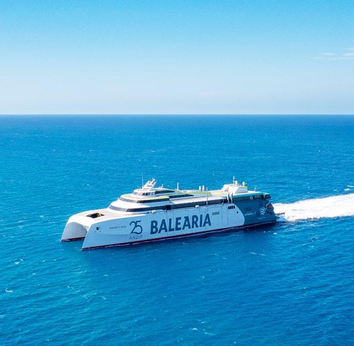 En la última década hemos dedicado muchos esfuerzos para reducir nuestra huella de carbono con el uso de energías más limpias, como el gas natural, y unas operativas más eficientes. En la actualidad, el 57% de la capacidad de transporte de la flota de Baleària cuenta con motores duales de GNL, y durante este año hemos comenzado a suministrar biogás neutro en emisiones de CO 2, procedente de granjas y vertederos, adelantándonos en estos casos al objetivo 2050 de cero emisiones. Gracias a todo ello nos enorgullece haber logrado una disminución del 9,5% de las emisiones de CO 2 por pasajero. Nuestro compromiso es seguir avanzando hacia un transporte marítimo respetuoso con el planeta.