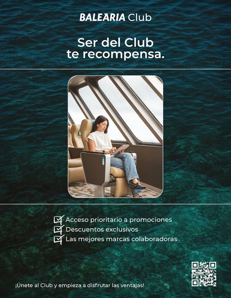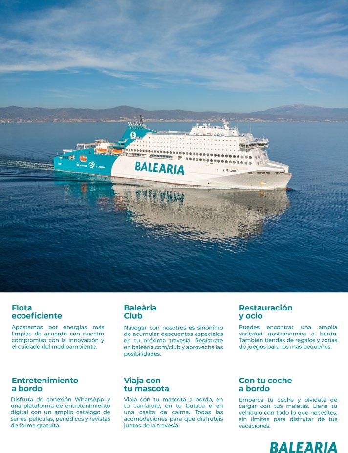 Edita Baleària, Departamento de Comunicación. comunicacion@balearia.com www.balearia.com/revista Presidente. Adolfo Utor Directora. Pilar Boix Redacción. Judit Binefa, Empar Oltra, Paula Nieto, Enric Abenoza. Realización. Ediciones Reunidas. Prensa Ibérica. Coordinación. Julio Fernández. Maquetación. Noelia Corbatón (jefa), Arantza Antero, Natalia Cristóbal, Judit Binefa. Impresión. Gráficas Jomagar.