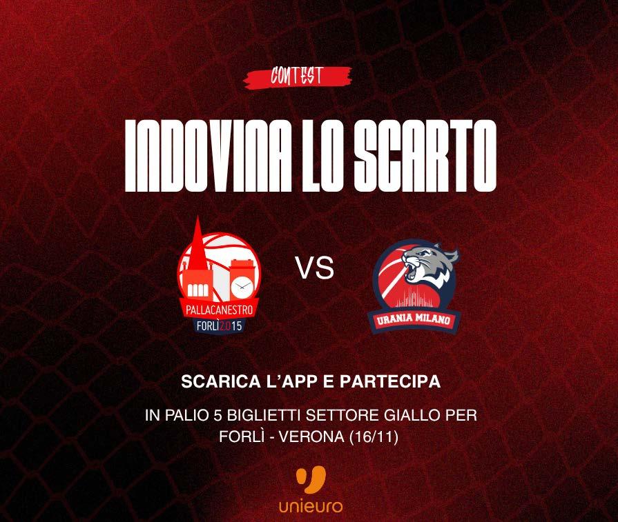 Complimenti a Rosella Lippi, Stefano Ortolani e Cristian Garavini, che hanno vinto l’App Contesto “Indovina lo scarto” centrando lo scarto di +10 di Unieuro Forlì – Urania Milano e hanno vinto un biglietto ciascuno per assistere alla partita di domenica prossima contro Verona.