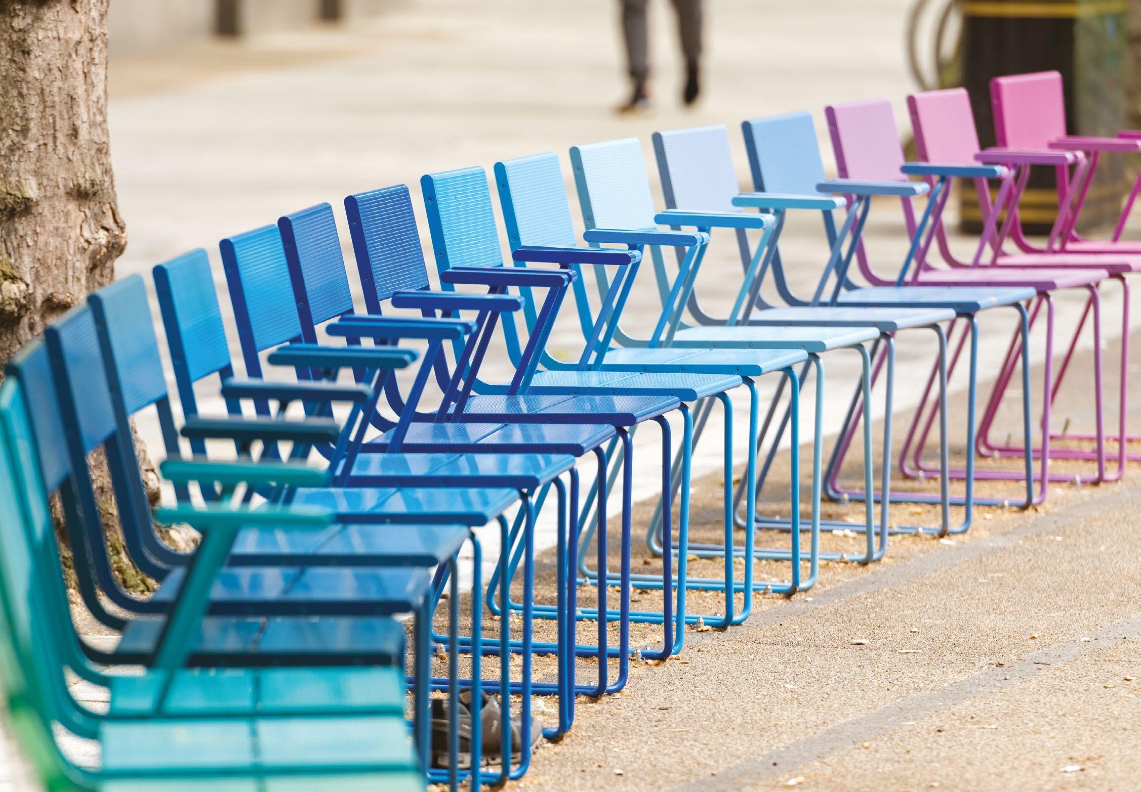 • The implementation of the APRIL GO series, including the first-ever rainbow social seating arrangement adds an emotive colour pallet and a prominent sense of place. The series is sustainably produced, with high-quality materials, and requires minimal maintenance.