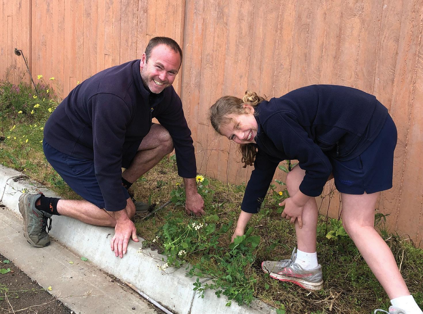 Ava Walkenhorst (pictured here with Year 4 Co-ordinator Mike O'Neill) is on the Gardening and Compost Committee: “I have learnt to act and care for our environment by composting as well as recycling.”