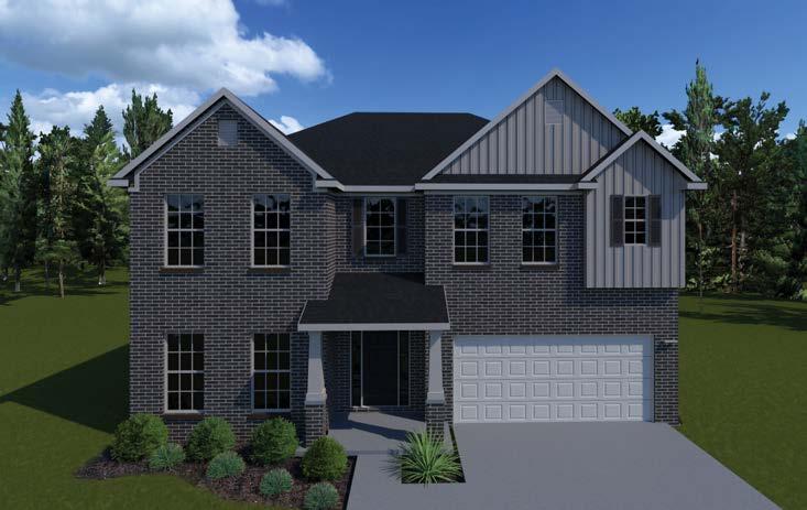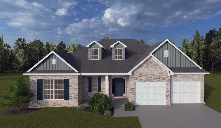 The Granville is a traditional two-story home with a firstfloor guest bedroom, along with a study and dining room off the entry. The main living areas include a large, two-story family room with optional fireplace and bookcases opening to the island kitchen and breakfast area. The kitchen adjoins the dining room via a hallway with a built-in butler’s pantry and walk-in pantry making this plan ideal for entertaining. A spacious mudroom with optional drop zone is located at the entry from the garage for additional organization. Upstairs, there are four bedrooms, a loft area, and a centrally located utility room with folding counter. The upstairs primary suite includes a sitting area, a luxurious bath with separate vanities, walk-in shower, garden tub, and two walk-in closets.