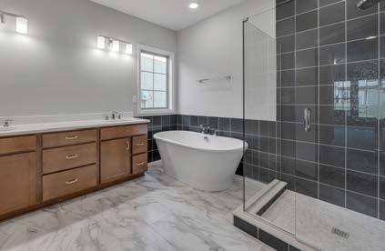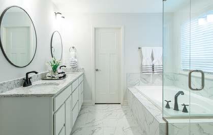 Create a luxury bath retreat with tiled whirlpool or garden tub, or standalone tub, paired with an oversized tiled shower, available per plan. Customize with expressive floor and wall tiles, shower options, and the perfect lighting.