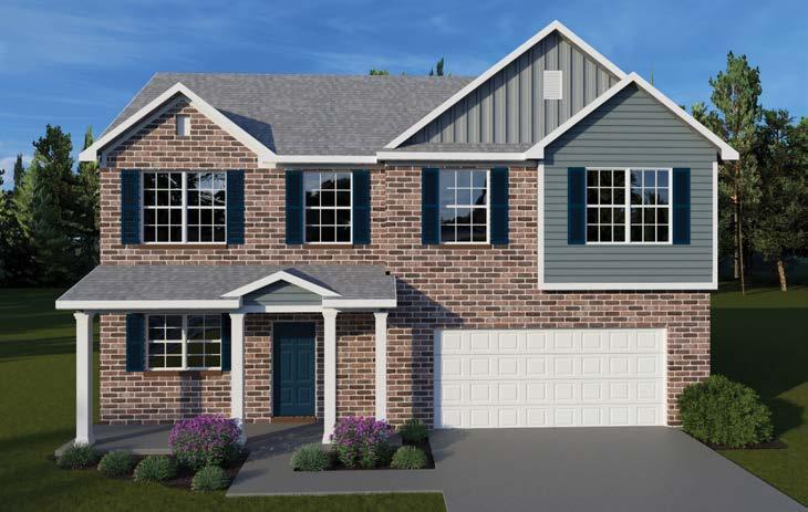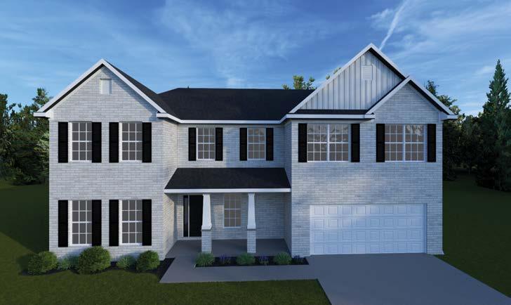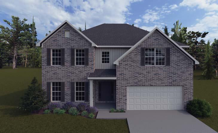 The Hudson II is an elegant two story home that combines traditional, formal styling with great livability and the potential for six bedrooms and four full baths. A two story foyer with balcony overlook creates a dramatic entry. Nine-foot ceilings are standard throughout the first floor, which has formal living and dining plus a family room with an impressive twostory bay window, and optional fireplace flanked by built-in bookshelves. The study can be converted to a first floor guest bedroom with access to a full bath option. The kitchen includes an island with counter seating, huge walk-in pantry, and separate breakfast area. The oversized mudroom/utility room combination includes as separate coat closet and builtin folding area.