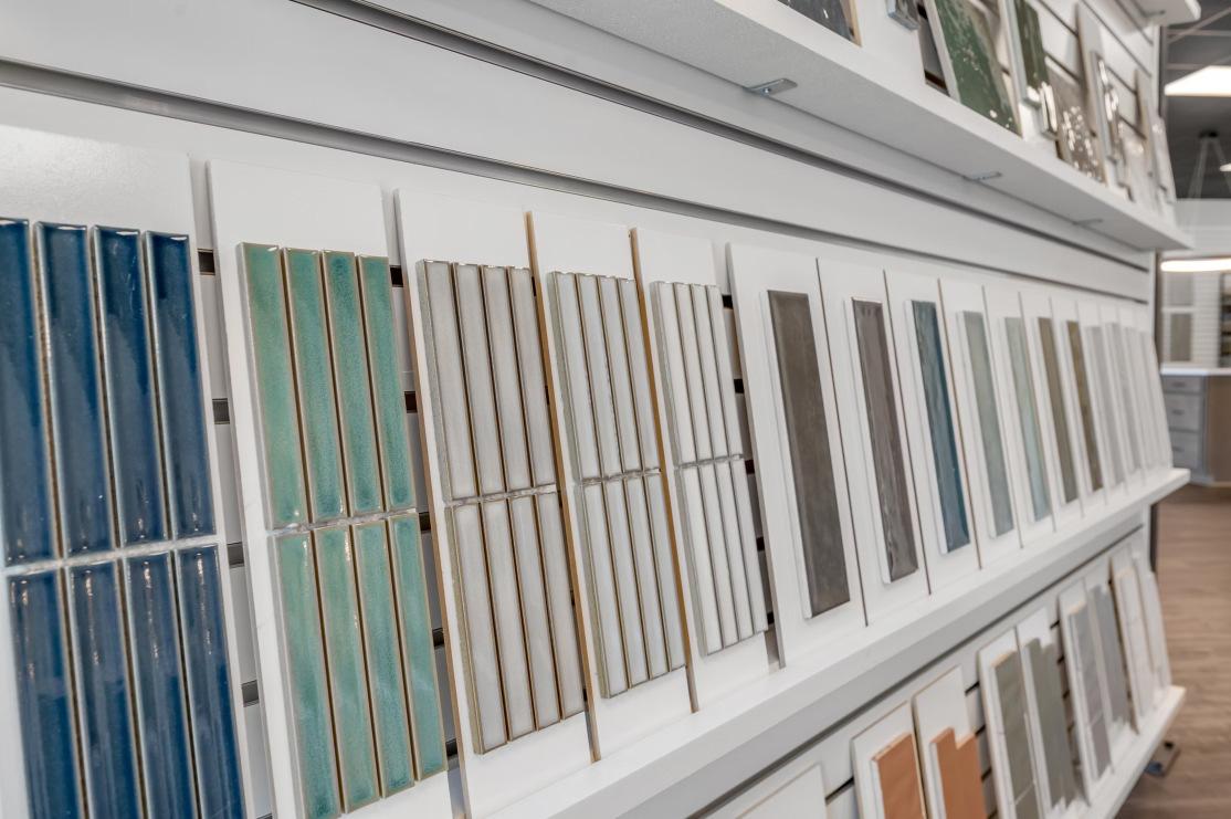 Almost all selections can be seen at the selection and design center in the Ball Homes office — cabinetry, brick, shingles, window colors, vinyl siding, shutters, ceramic tile, carpet, vinyl flooring, paint colors, countertops, lighting, and more. Appliances are selected from an online catalog. Major fixtures like tubs, showers, and fireplaces are showcased to some extent in the design center and also in model homes.
