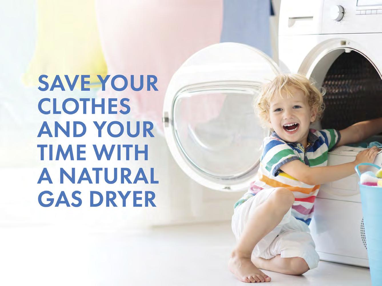 For details call 850-436-5050 or visit pensacolaenergy.com Natural Gas Dryer Benefits: • Dries clothes in about half the time • Quicker drying means less wear and tear on clothes • Uses less energy, saving you money Pensacola Energy offers a $200 rebate when you switch to natural gas clothes drying.