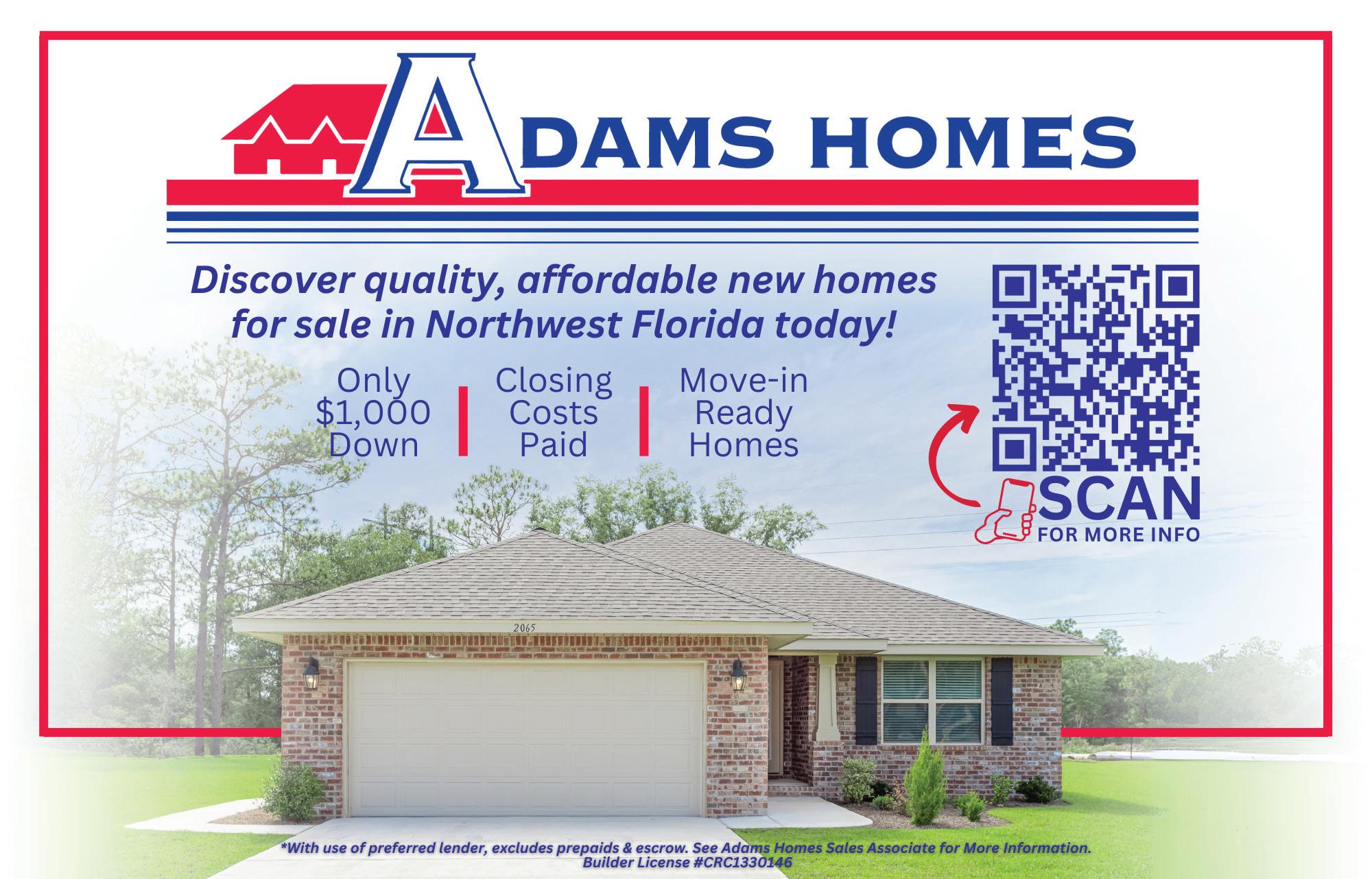 Construction will soon begin on a major subdivision project that will bring more than 800 new homes to Santa Rosa County. The multi-phase residential development, Parkland Place, will span more than 300 acres of undeveloped land off Berryhill Road in Pace. The project will include 850 lots of single-family homes across 315 acres. Parkland Place is themed around large walking/riding paths that are interconnected with the amenities and parks located throughout the community. The community will also feature a variety of amenities, including a clubhouse, grill pads, a splash pad, a pool, a playground, pickleball courts, 56 parking spaces and more. The design for Parkland Place is being thoughtfully crafted by the teams at Garden Street Communities, David Fitzpatrick Engineering and Jerry Pate Design. Adams Homes will serve as the designated homebuilder for the project.