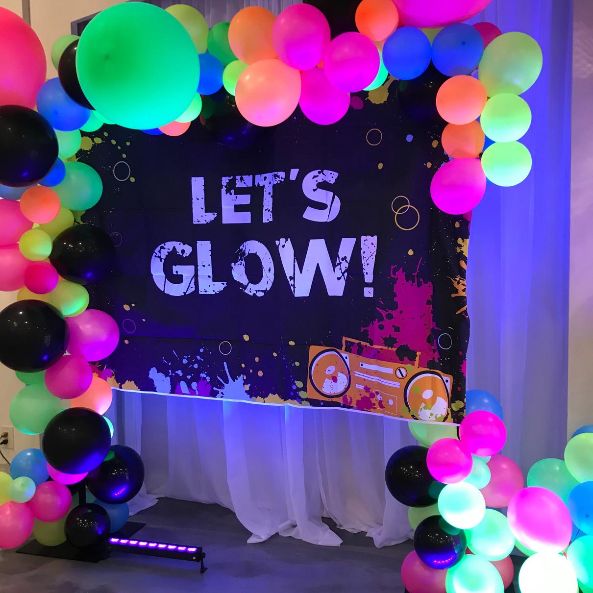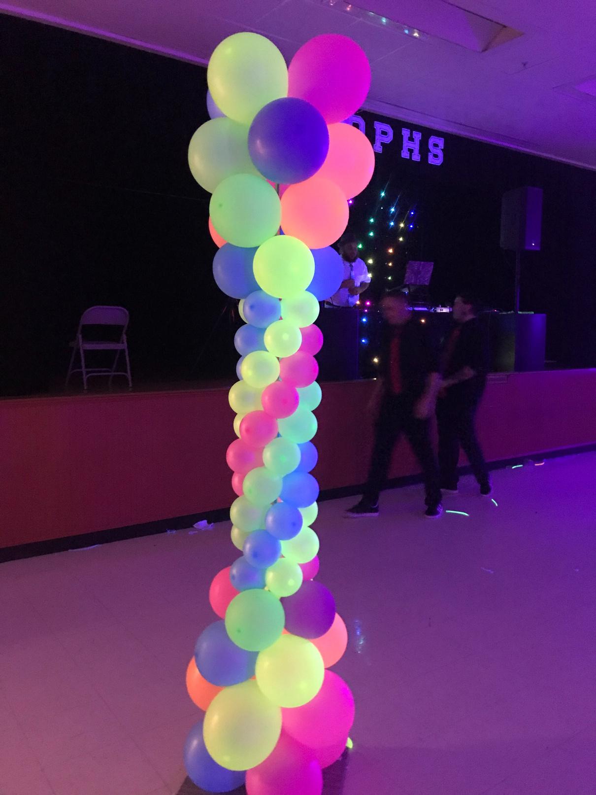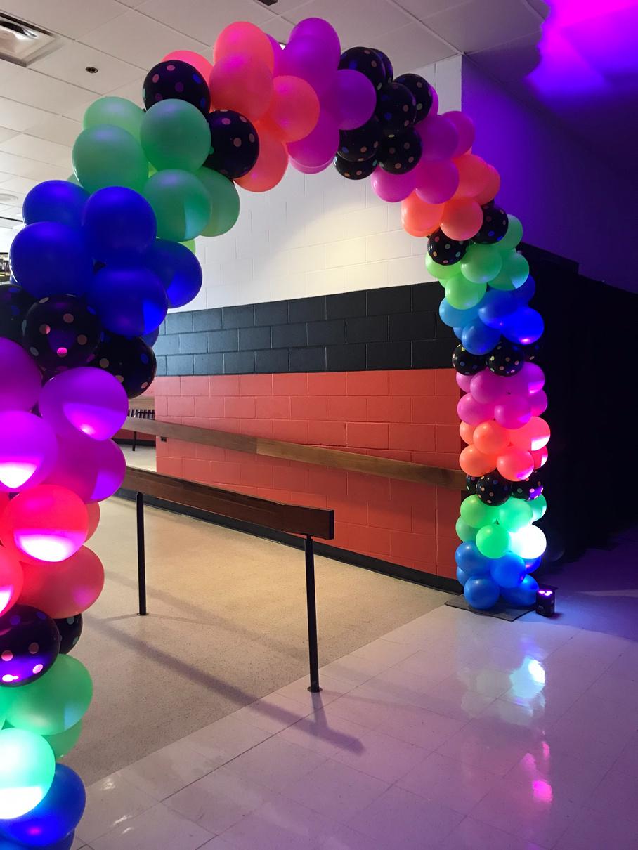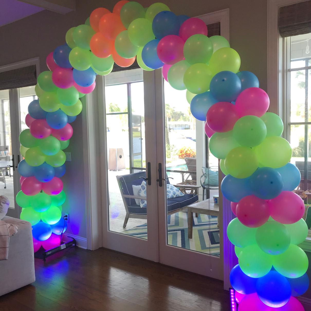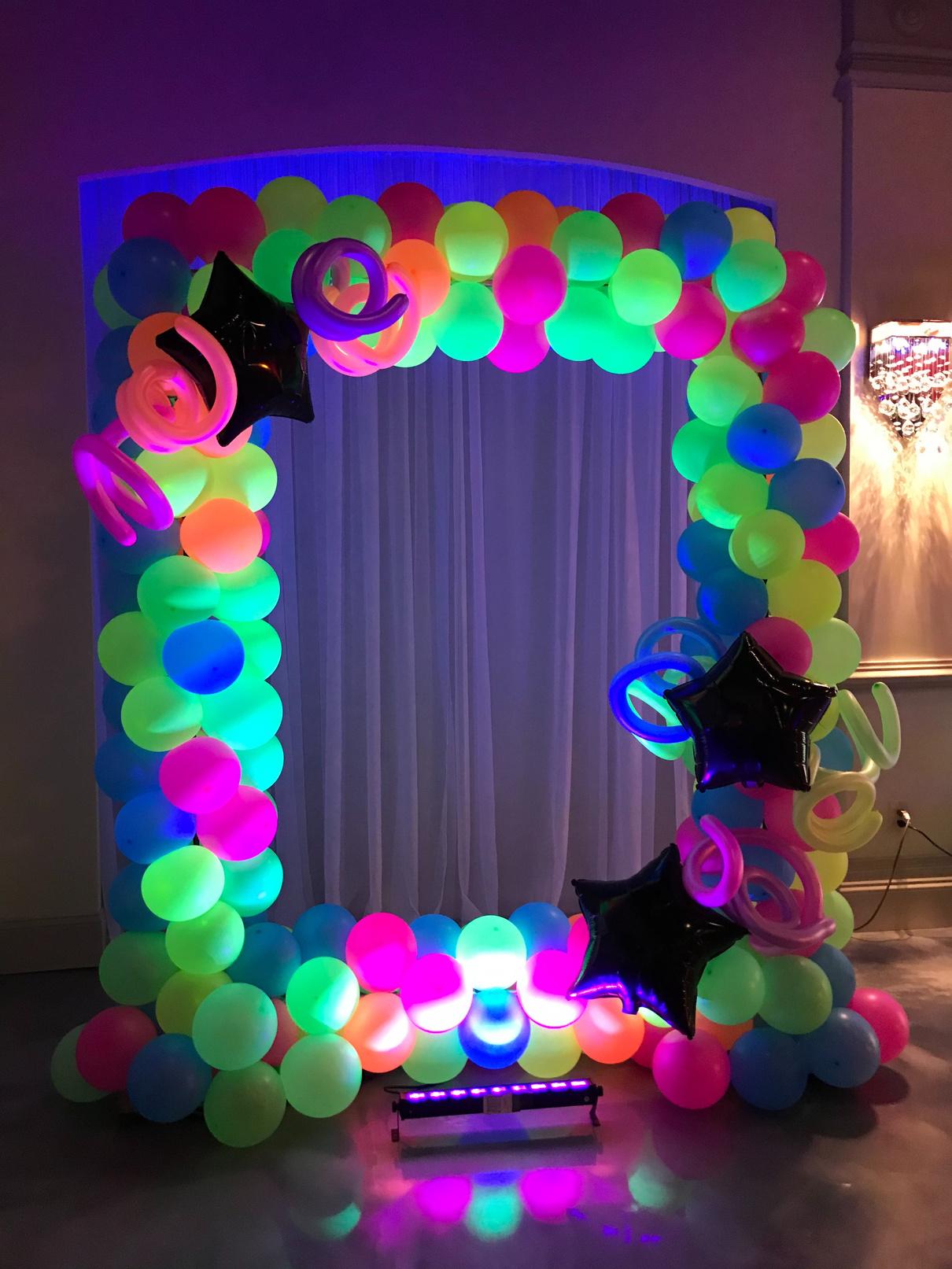 NEON ARCH 8' by 8' Framed Arch with blacklight reactive balloons! $300.00 Indoors or Outdoors