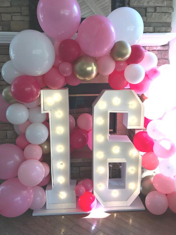 Rentals Double-digit marquee numbers wrapped in our amazing balloon garland $300.00 plus delivery and strike! Single-digit number with our amazing balloon garland $200! $100.00 per number plus delivery and Strike! CALL US AT W W W . B A L L O O N A N D E V E N T S . C O M 904-220-5411