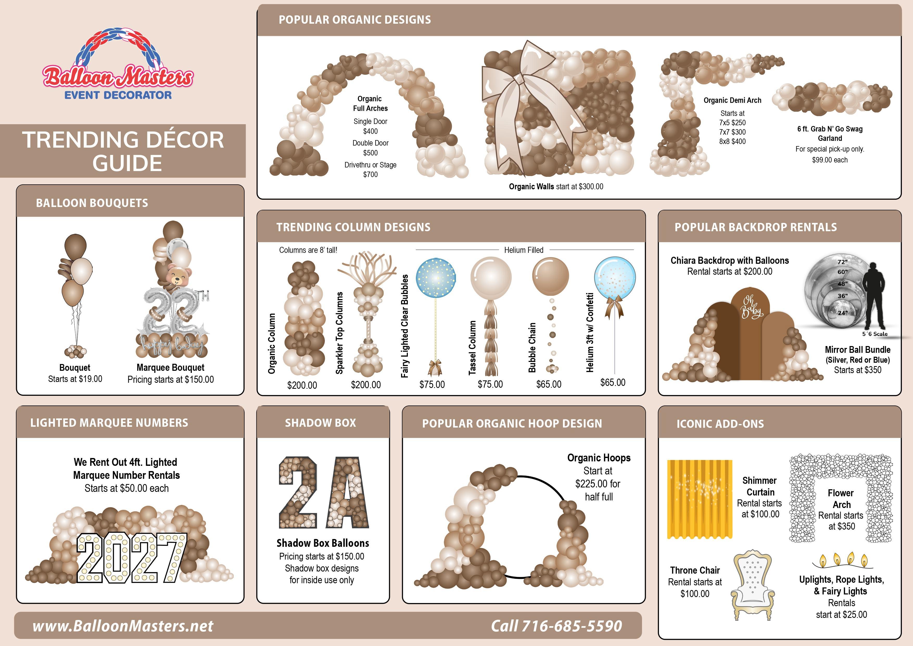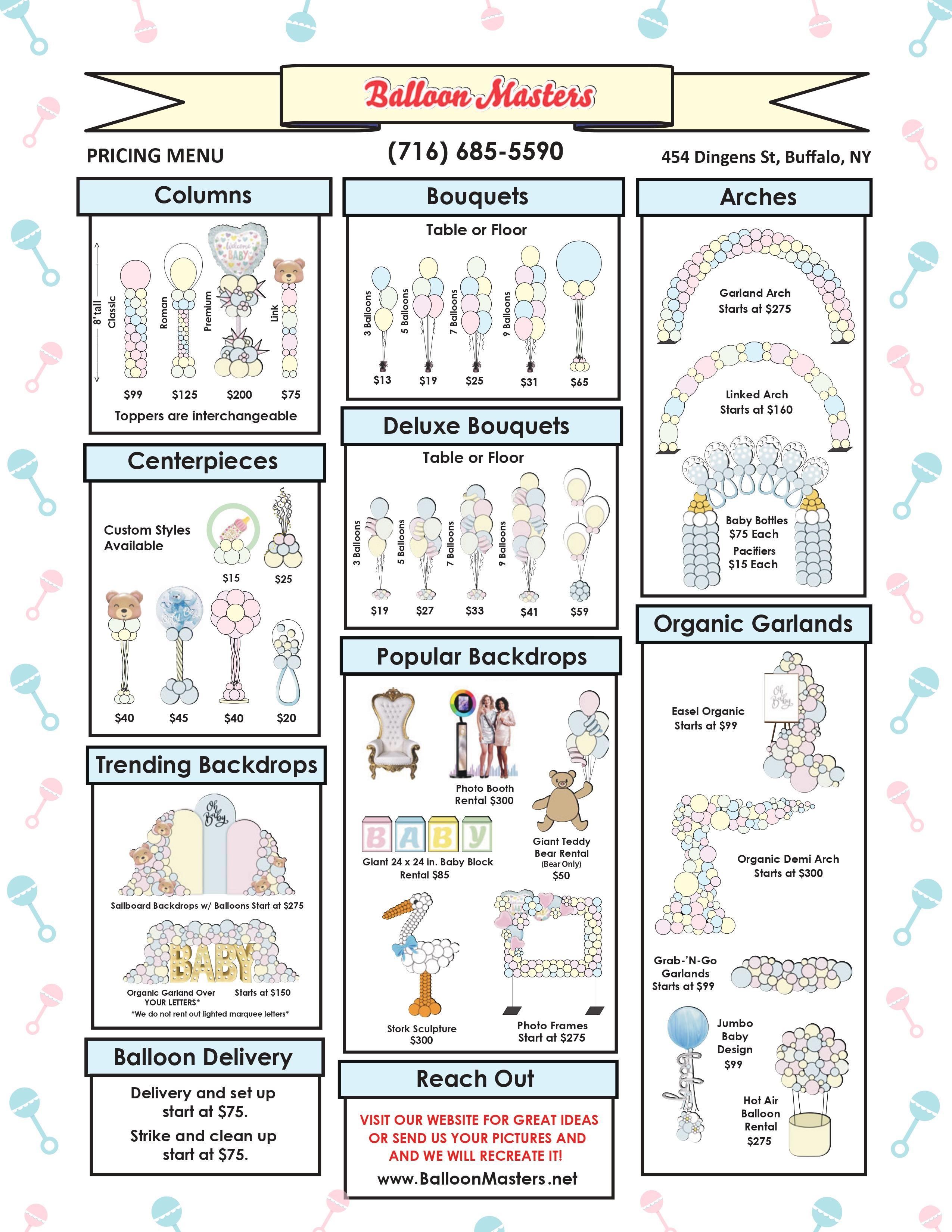 At Balloon Masters, we are experts in making every special occasion extra memorable with our balloon delivery and decor services. No matter where you’re located, if you're looking for the best balloon decorating services, you’re in luck! Balloon Masters is a NYbased company that designs, delivers, and sets up balloon decor for all sorts of special occasions seven days a week. With over three decades of experience, our team works diligently to make sure that each event is one that your guests will remember for many years to come! Get a quote by filling out the form under the ‘Contact’ section on our website: www.BalloonMasters.net or call us: 716-685-5590