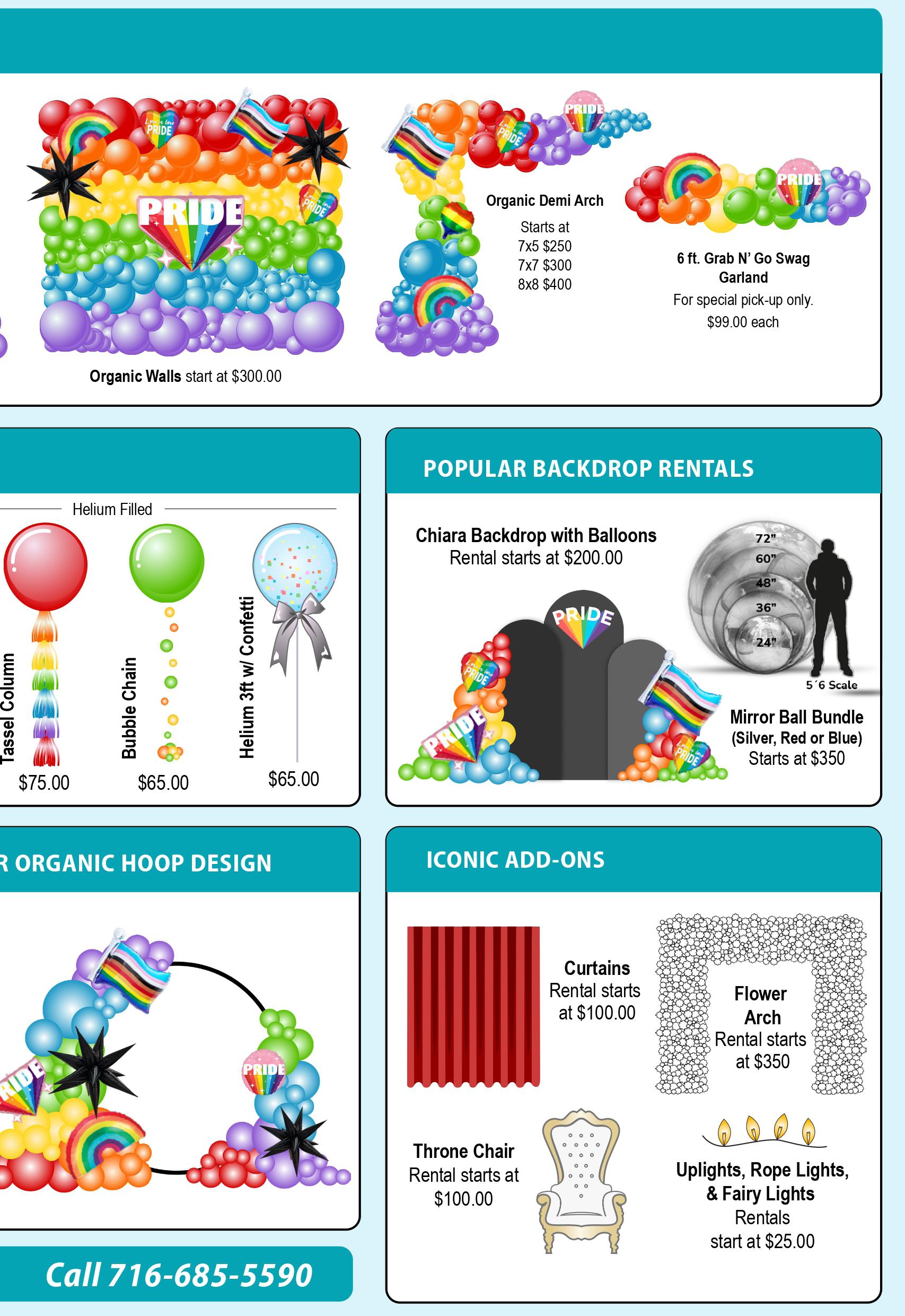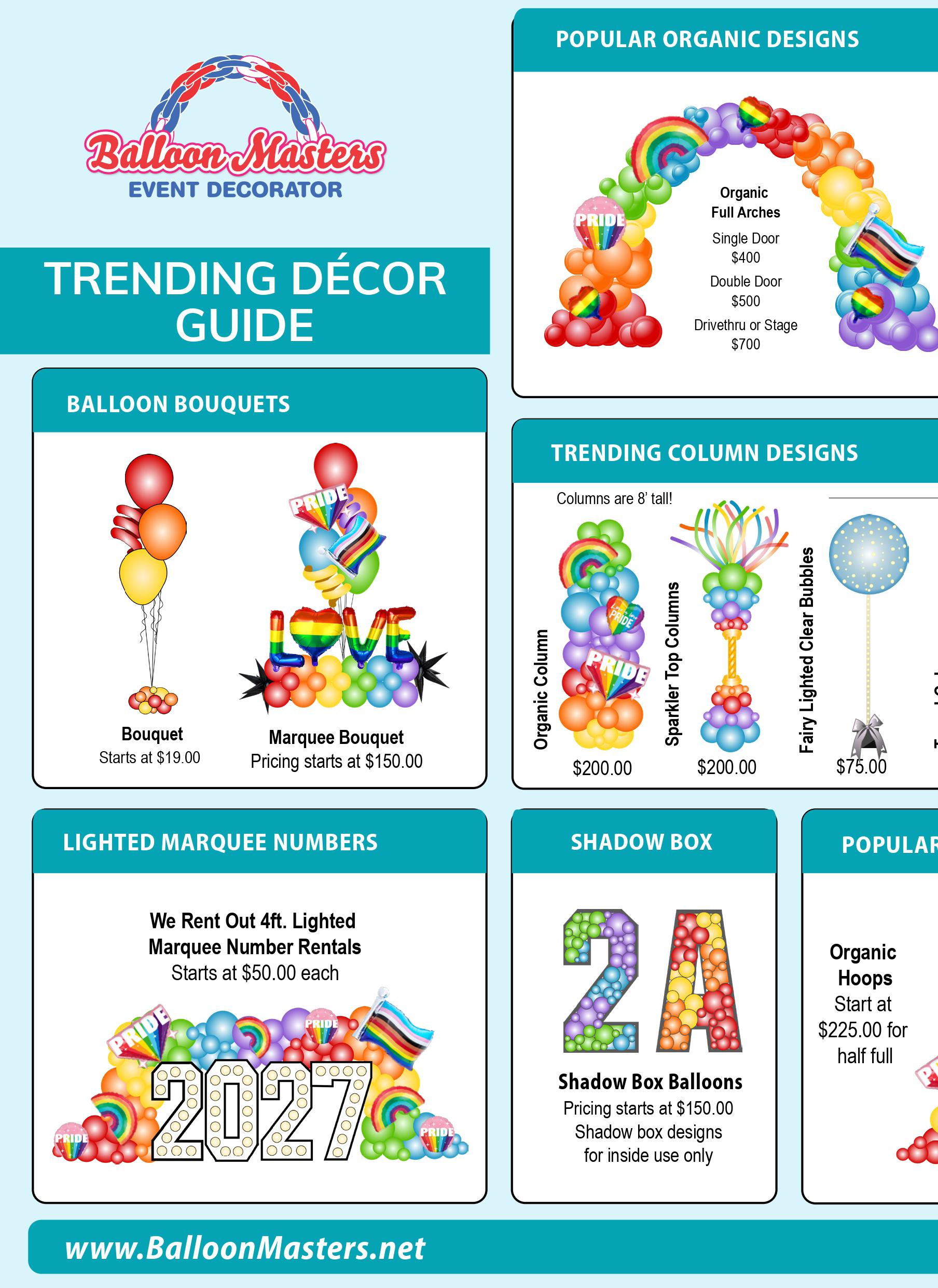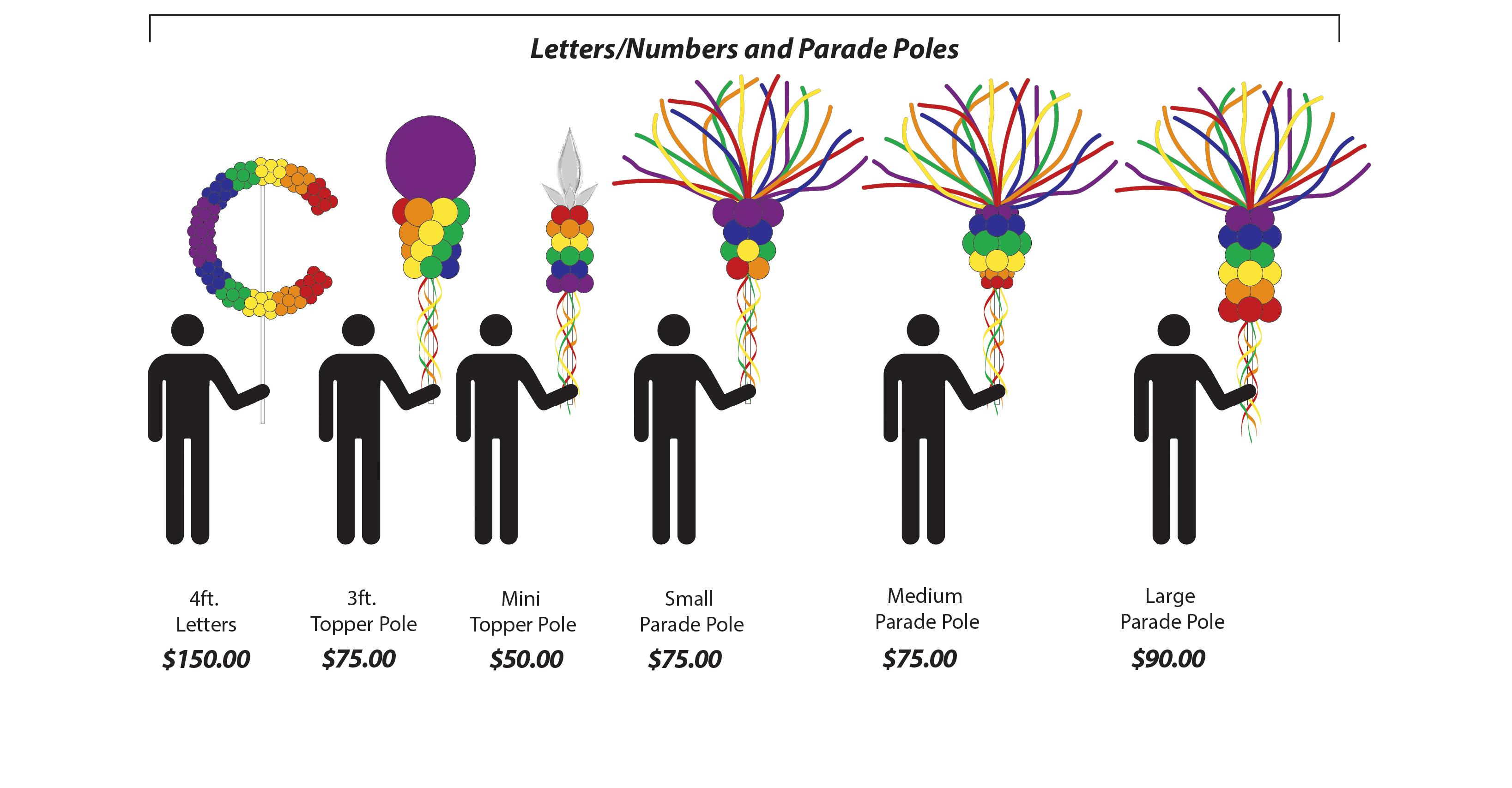 WALKABLE BALLOON COSTUMESFun and funny one of a kind balloon heads, wavers, parade poles and more!CENTERPIECESSupport your staff, students, or guests with a bit of flair on the tables or buffet with our custom centerpieces!$199 each