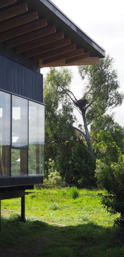 “A scary look but a good guy” Diseñada para un cuidador de un campo en el Lago Rapel, La Estrella, O’Higgins, Chile. El contexto es el borde del lago, hay algunos árboles nativos de la zona central chilena. Pensado en base a la idea de un corral, que se proteje solo del exterior. Módulos que se repiten para conformar la cinta perimetral de la casa en madera yakisugi tratamiento japonés. Una fachada ventilada y un interior de paneles sip.