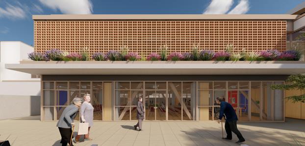 Materiales elegidos cerramientos trabajos bajo criterios de eficiencia enegética que contribuyen con el confort. Se propone fachadas con fenestraciones así proteger del sol a los adultos mayores y crear un ambiente grato de habitar y su vez constituya un espacio seguro.