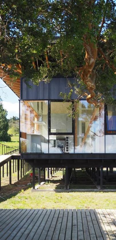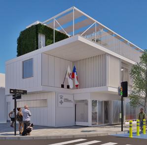 Sistema constructivo prefabricado, compuesto por paneles modulados tipo SIP compuestos de placas de madera estructural y aislación integrada. Una estructura de base en perfiles de acero que permite elevarse del nivel de terreno natual con liviandad.