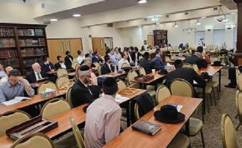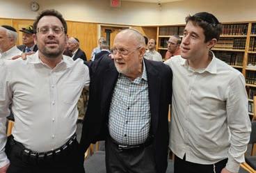 The men and women from the Bnai Jacob Shaarei Zion community gathered at the Reitberger home for a festive evening celebrating a siyum on Seder Nezikin. The program began with Mincha, followed by an elegant dinner, divrei bracha from the ruv, HaRav Daniel Rose, and an uplifting pre–
