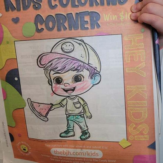 to The Candy Store Win $10 HEY KIDS! Take a picture with your artwork and submit it to thebjh.com/kids to enter a raffle for a chance to win $10 to The Candy Store! See your picture in print the following week! Two winners • every week • Submissions due Sunday, March 31st Download extra coloring sheets from thebjh.com