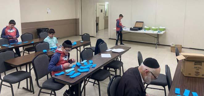 Team Erez Seiferas spent the afternoon sorting and bagging Shaimos at the Agudah.