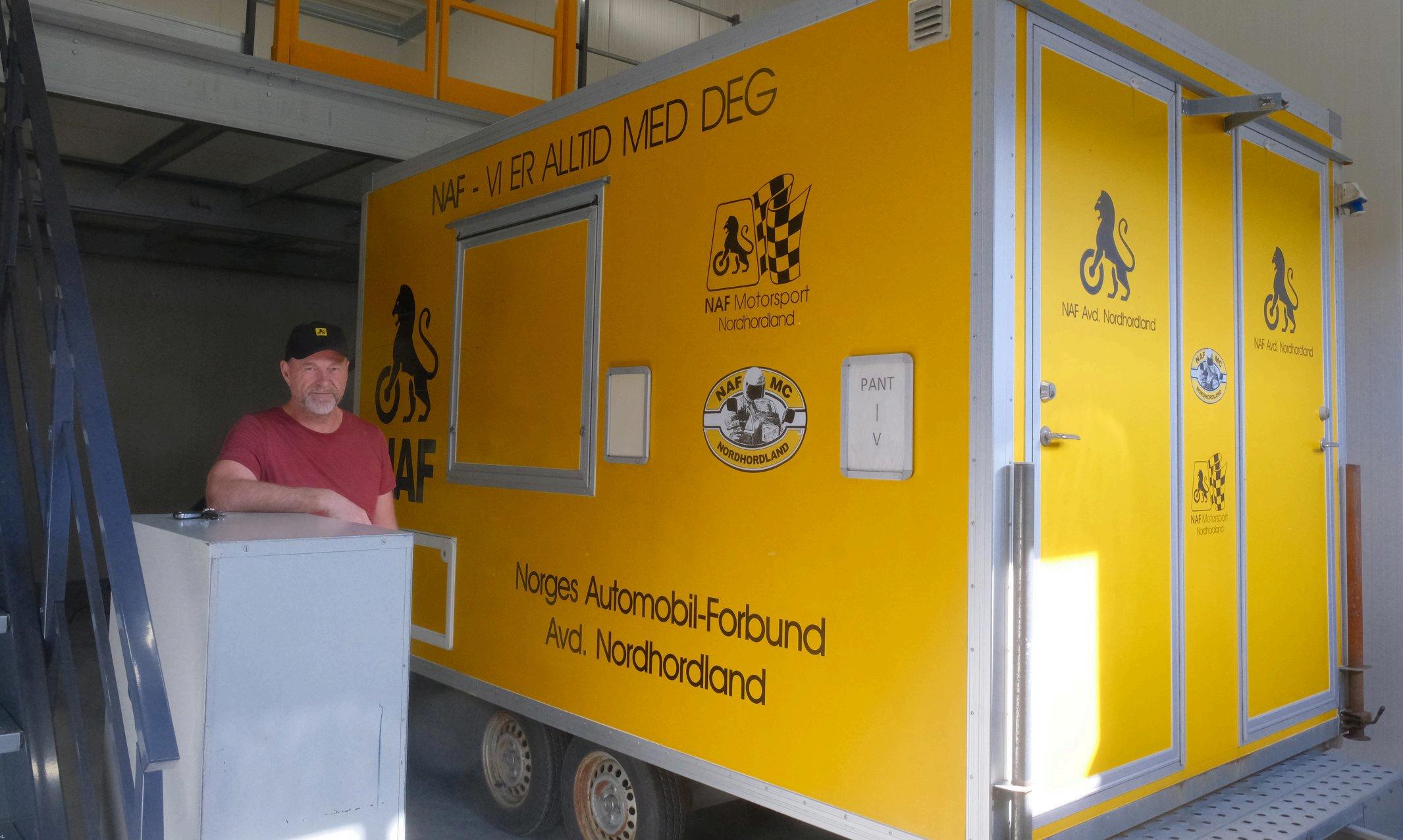 – Vogna er eigentleg skreddarsydd for denne type arrangement,medplassbådetilsekretariat, vaffelpresse og pølsebod samtidig, seier NAF-leiar Terje Villanger. Etter mange år underopenhimmelervognano vaska og stelt og gjort klar for eit liv under tak.