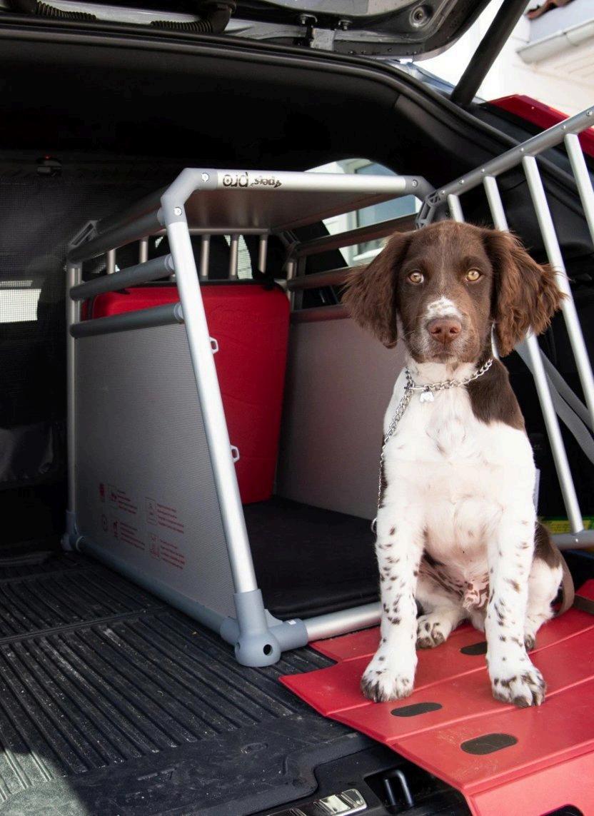 Besteplasseringforeinhunder i eige bur i bagasjerommet. Det finst ei rekke hundebur på marknaden, alt frå enkle sammenleggbare til store og kollisjonstestede bur. Eit samanleggbart bur kan kollapse ved ein kollisjon og ta livet av dyret,medandeistørre,tyngre og dyrare brura i mykje større grad beskyttar dyret i ein samanstøyt.