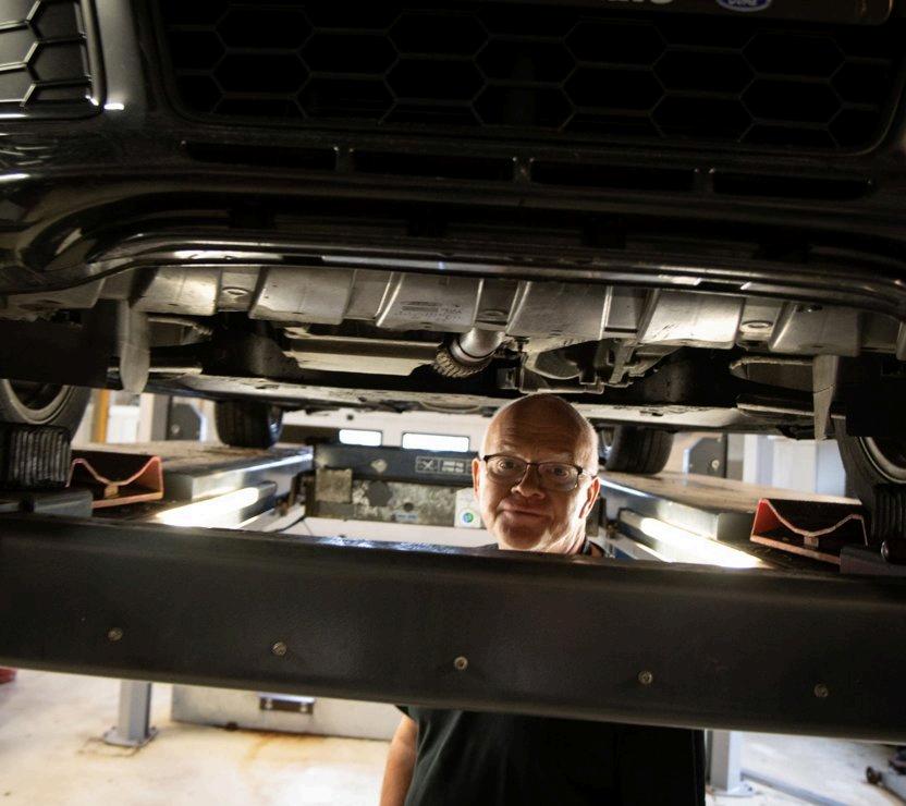 Knutsen fortel at bilen hans er tung på kløtsjen og har «muskelservo»,menåskaffesegmoderne elbil, er uaktuelt.