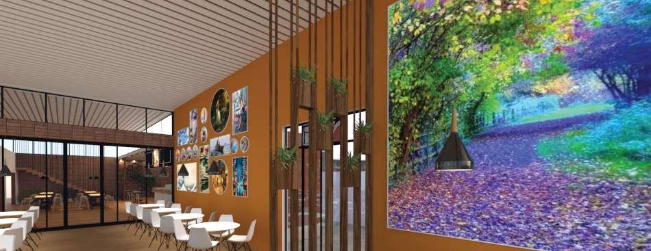 Envisage with the intention to create a space that is close to nature, The cafe has a strong visual as well as physical connection with environment. The design complliments the surrounding and hence at the same time provide a contempory feel to the whole structure symbolical.