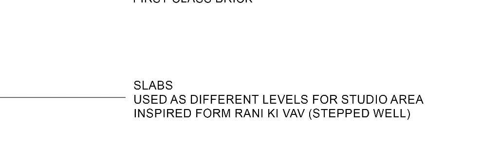 Responding to the paucity of water in Ahmedabad, beside the studios features a MODERN MIIMALISTIC FLEX ROOM FLOATING at the centre of a stepwell. Stepwells adding in an essence of ancient Indian architecture, besides meeting the basic water needs also serves as cool and relaxing interacting space for students or other users during the heat of the day or overnight.